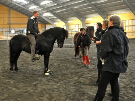 Linda och Lotta samt Gundel och Svala var på 3-dagarskurs i helgen i hållbar träning för Magnús Skúlason på Brösarpsgården. I kursen ingick att Magnús provade våra hästar. På bilden ovan rider han Svala.